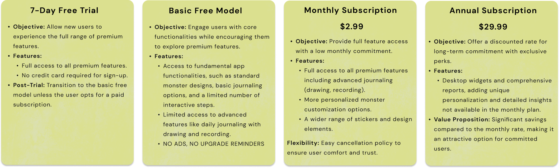 Fuzzy Huggy, however, will adopt a hybrid of a subscription model and a freemium model, and distinguishes itself by offering more tiered options compared to its competitors. This strategy benefits both the users and the company. For users, it provides greater flexibility and choice, allowing them to select a subscription level that best fits their needs and budget. For the company, this approach not only caters to a wider range of consumer preferences but also has the potential to increase customer satisfaction and loyalty, thereby enhancing revenue opportunities and market positioning.