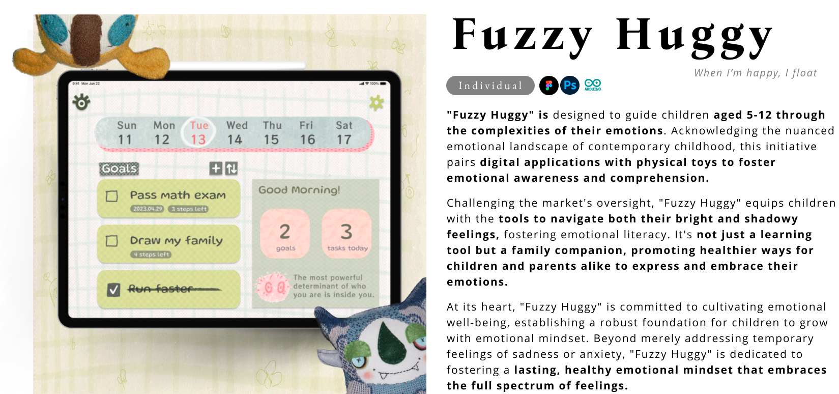 While the Worry Doll app appears to address a similar need, its simplicity relegates it to being more of a basic goal-setter or problem-list tool, rather than a comprehensive emotion management application. Moreover, its fundamental features cater to a general audience, lacking the specialized design and functionality specifically tailored to children's emotional needs. This leaves a void for a self-revealing product specifically tailored to children.