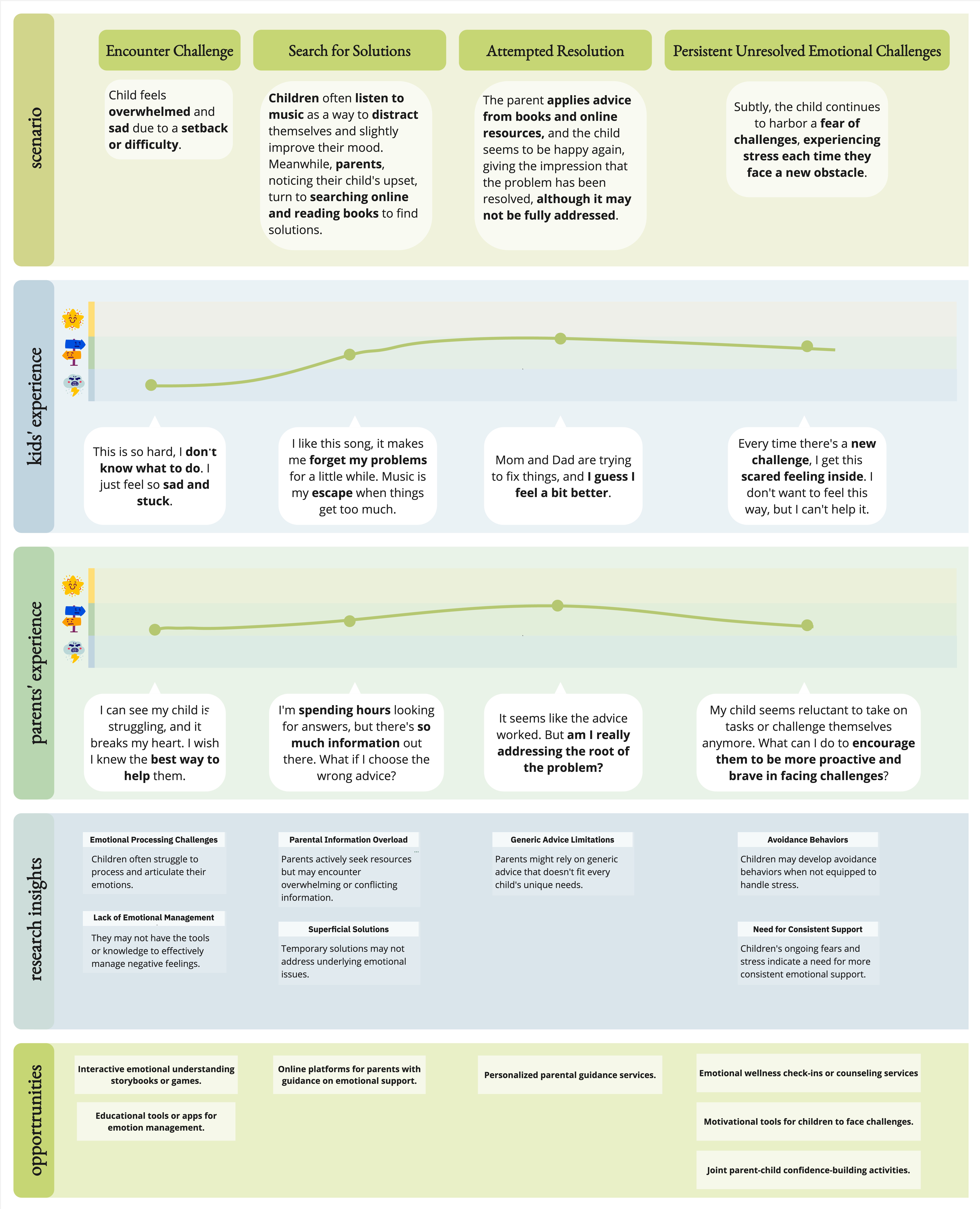 It's important to recognize that the scenarios outlined below are idealized. In reality, there's a significant possibility that children may not be fully aware of their own emotions. Additionally, parents might overlook subtle changes in their child's emotional state due to the rapid fluctuations of children's moods or a lack of emphasis on their importance. In either case, consistently paying attention to and engaging in discussions about children's mental health is crucial.